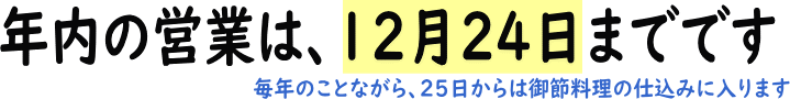 2025年の店休日のご案内